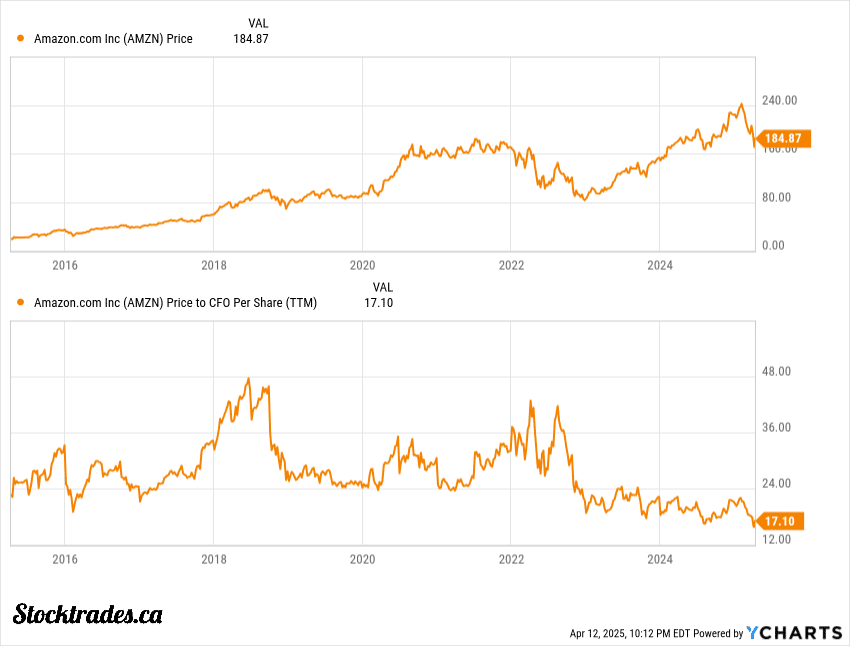 In fact, Amazon is trading at some of the lowest valuations in the last decade when we look to a price-to-operating cash flow (see the chart above).