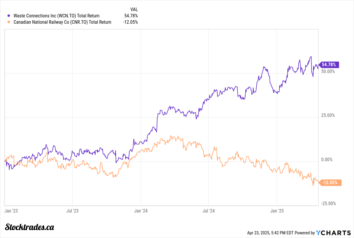 A quick highlight on Waste Connections first. I replaced Canadian National Railway (TSE:CNR) for Waste Connections on the Canadian Foundational Stocks back in 2023. My prime reasoning was because CNR was a cyclical company heading into a likely economic downturn, while Waste Connections was nearly immune to a weak economy because of its business model.