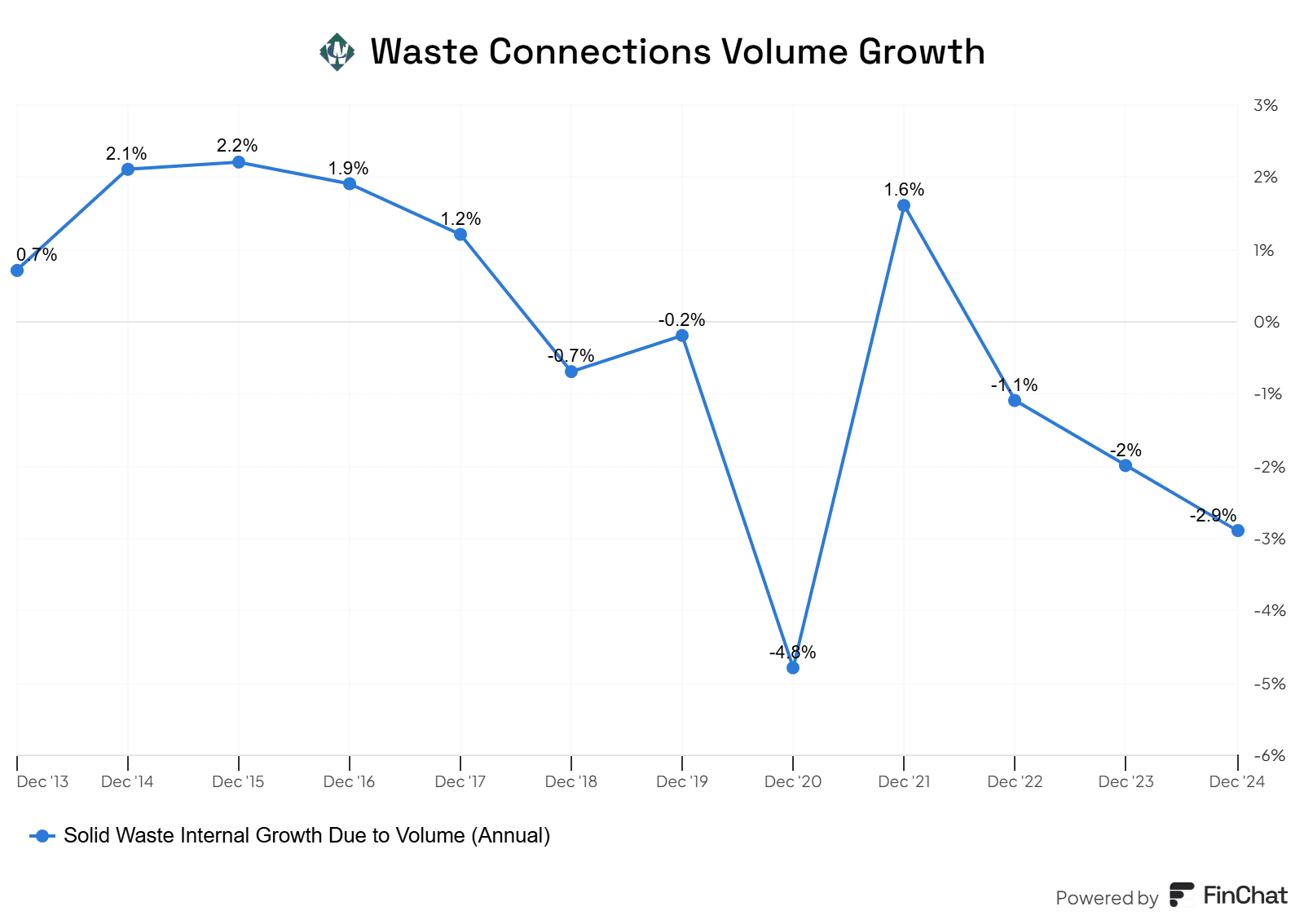 Overall volumes fell by 2.8%, recycling by 0.1%, and waste surcharges fell by 0.2%. In addition to this, the company had a 0.9% decline from some closed operations and a 0.7% overall decline in foreign exchange fluctuations. However, again, we look back to that core pricing growth of 6.9%, which more than offset all of this, to sit at overall growth of 2.2%.