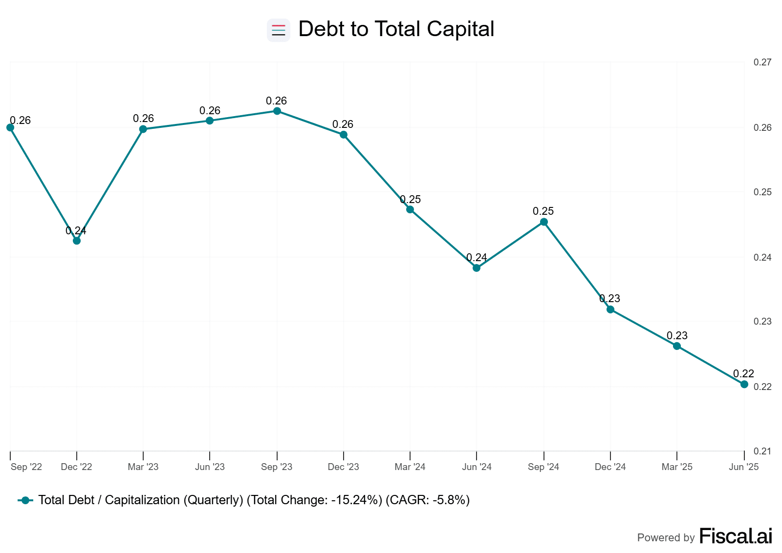 The company has finally got its debt-to-total capital ratio below where it was prior to its string of acquisitions last year.