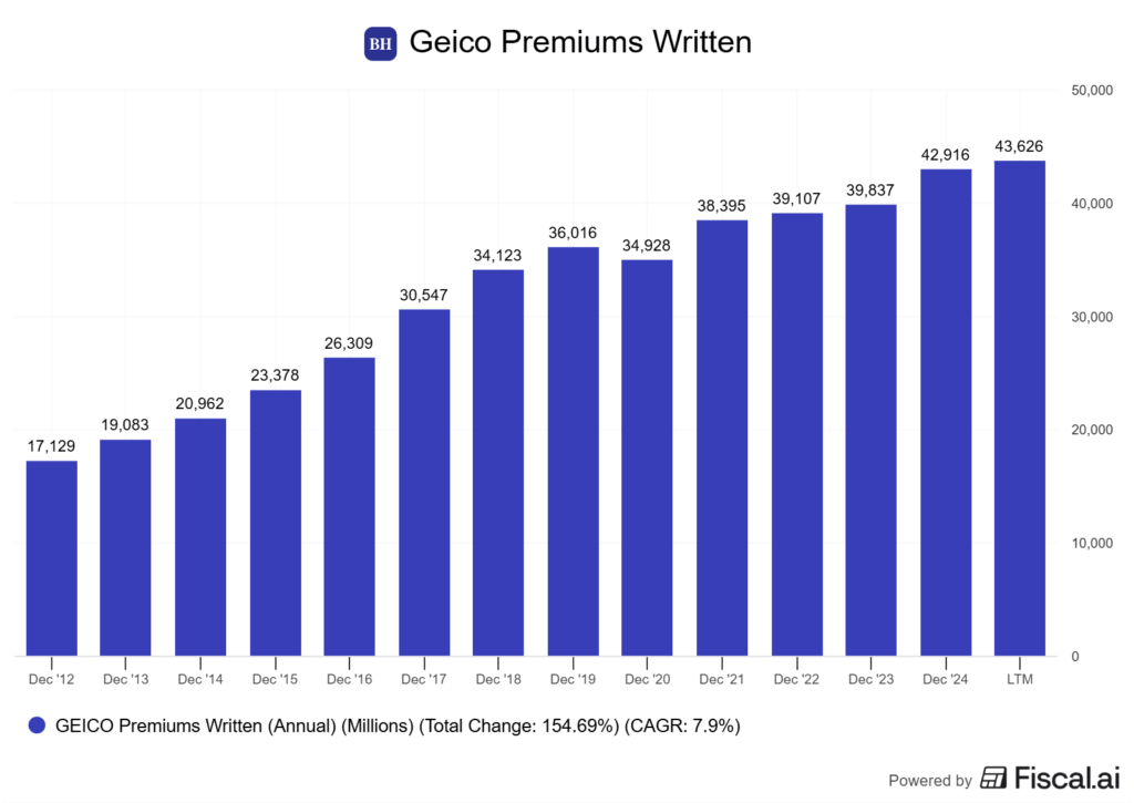 Insurance still anchors Berkshire Hathaway. The mix covers Geico’s auto book, reinsurance, and specialty lines.