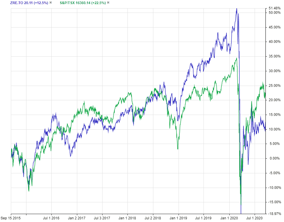 ZRE provides exposure to a diversified mix of Canadian REITs, using an equal-weight strategy. This approach reduces concentration risk by ensuring all holdings have a similar impact on performance.