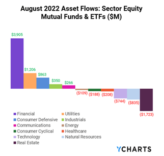There was one interesting chart on the US side, that of Sector Equity flows. In August, Real Estate saw $1.7B in outflows, the largest amount despite the fact it has historically been a good hedge against inflation.