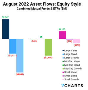 Continuing a trend we’ve seen over the past months, Canadians are moving towards a fixed income strategy. In August, the Canadian Fixed Income category saw a net addition of $3.52B in inflows. This was by far the most pronounced as no other category topped $1B of inflows.