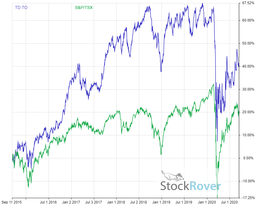 It is also important to note that TD Bank’s drawdown over the years due to anti-money laundering issues is also resulting in its yield being much higher than historical averages.