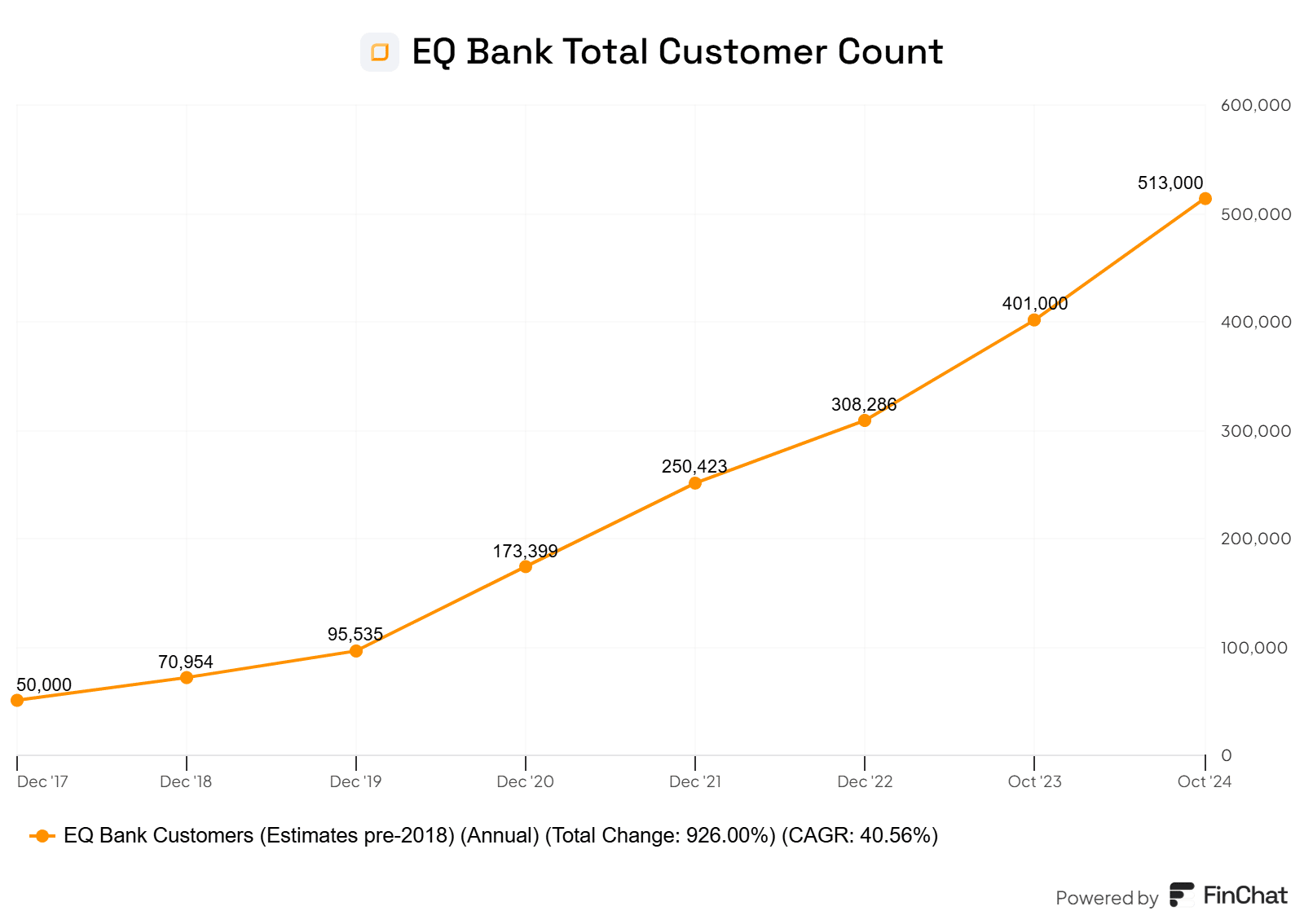 When we look to full-year numbers, the bank closed out the year with EPS of $11.03 and customer growth of 28%. The bank now has over 513,000 customers (see chart below) and is continually growing its base on the back of rock-solid new products.
