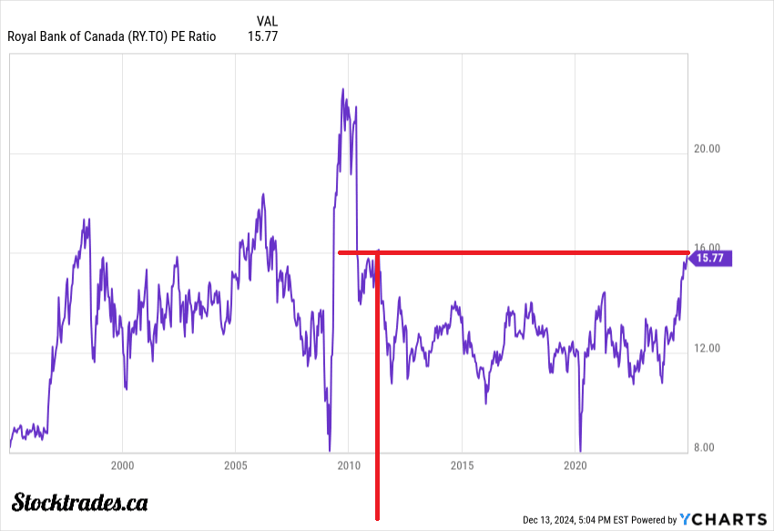 Royal Bank is trading at near 15-year highs in terms of overall valuations (see the chart below).