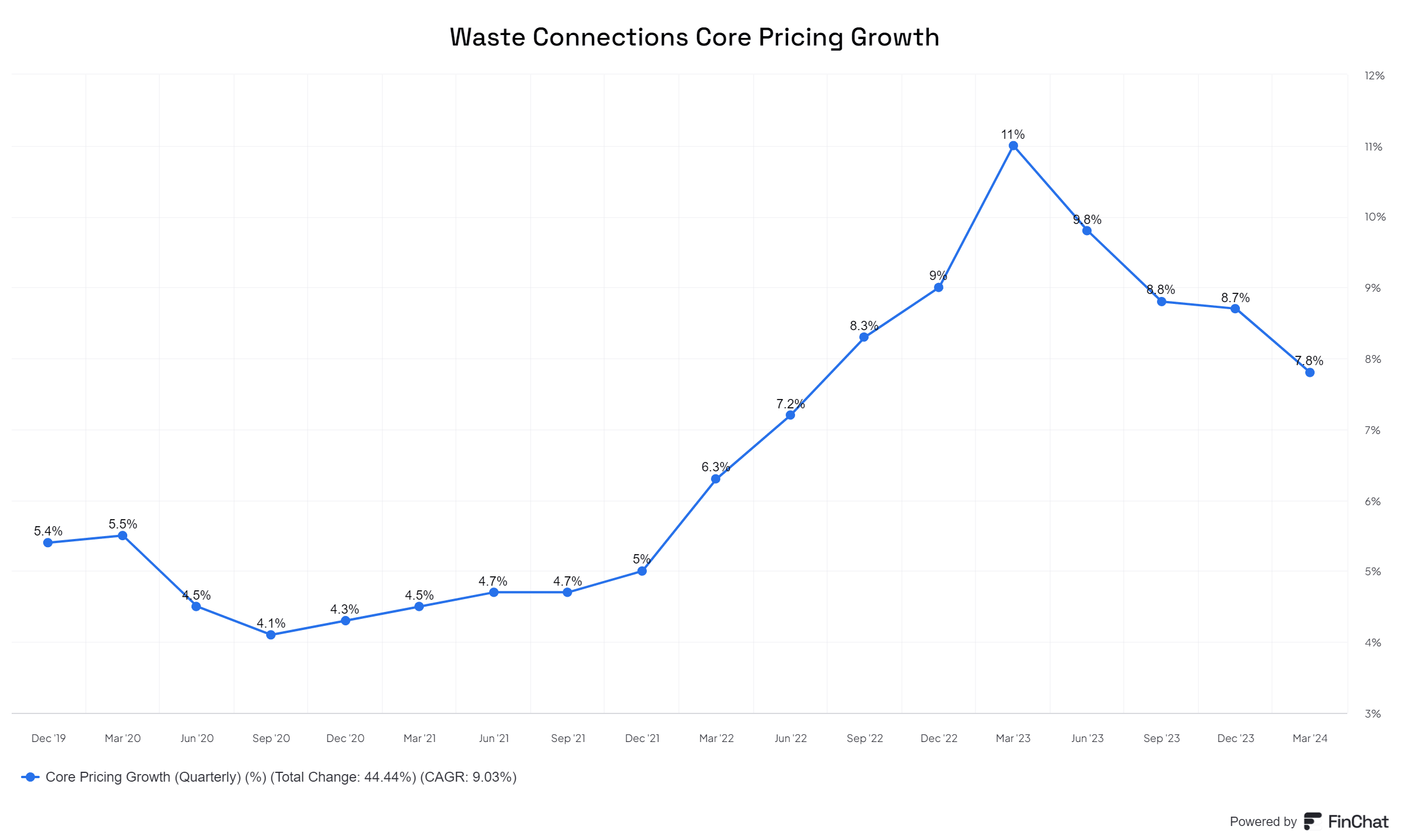 The company is continually showing how valuable pricing power is in this environment. Despite lower solid waste volumes, the company has been able to offset this with pricing increases to continue fueling growth.