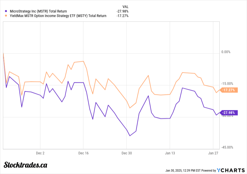When we look to a stock like MSTR and its income variant MSTY, we can see some sort of buffer during its recent drawdown.