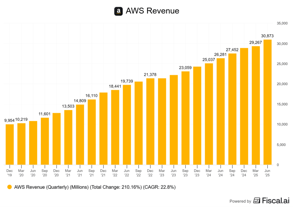The core engine is AWS. It delivered 19% year-over-year revenue growth last quarter, hitting USD 30.8 billion.