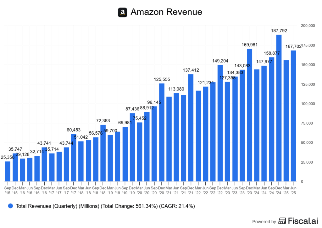 Amazon’s revenue story looks strong on the surface. Net sales climbed 13% year-over-year to $167.7 billion.