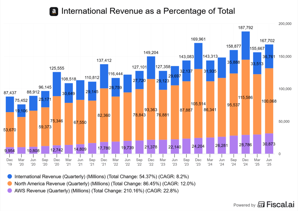 Overseas sales remain a meaningful slice of Amazon’s business.
