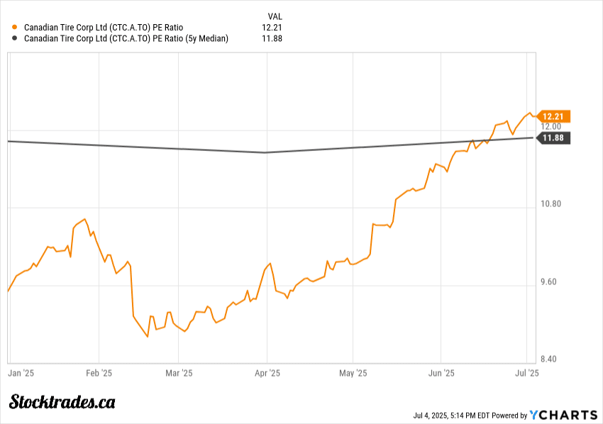 I believe the market’s optimism is deserved for now, but it is important to note the stock is pushing the upper boundary of its historical valuation. If Canadian Tire can sustain these sales trends and keep winning new customers, there’s more runway. If not, history shows these rallies can cool quickly.