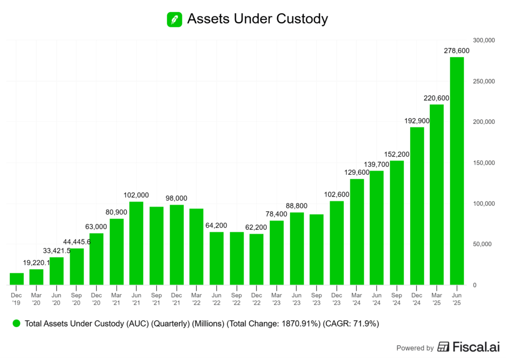 Still, the company keeps reporting steady engagement from funded accounts. The main thing moving the needle is money coming onto the platform. In July, net deposits hit about USD 6.4 billion, pushing assets to roughly USD 278 billion by month’s end.