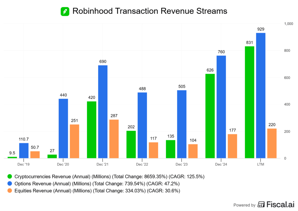 That’s real momentum, but it also means the business is more sensitive to market cycles. At some point, crypto will go through a large drawdown, and trading will decline. Robinhood’s revenue engine is simple. It earns money when users trade.