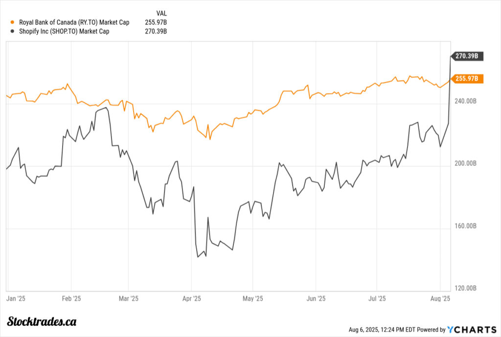 The company has posted double-digit revenue growth, signed deals with global brands, and rolled out AI features to give merchants an edge. It has now reclaimed the title of the largest company in Canada, outpacing top Canadian bank stock Royal Bank.
