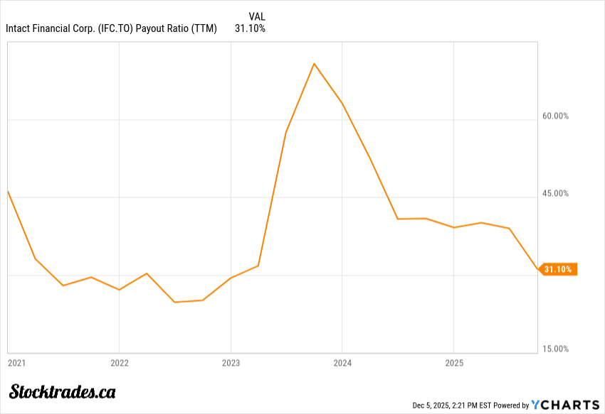 Rising rates have given insurers a massive tailwind. Intact’s investment income has climbed as bond yields stayed high, providing a nice supplement to their underwriting income. In 2025, underwriting income increased by double digits.