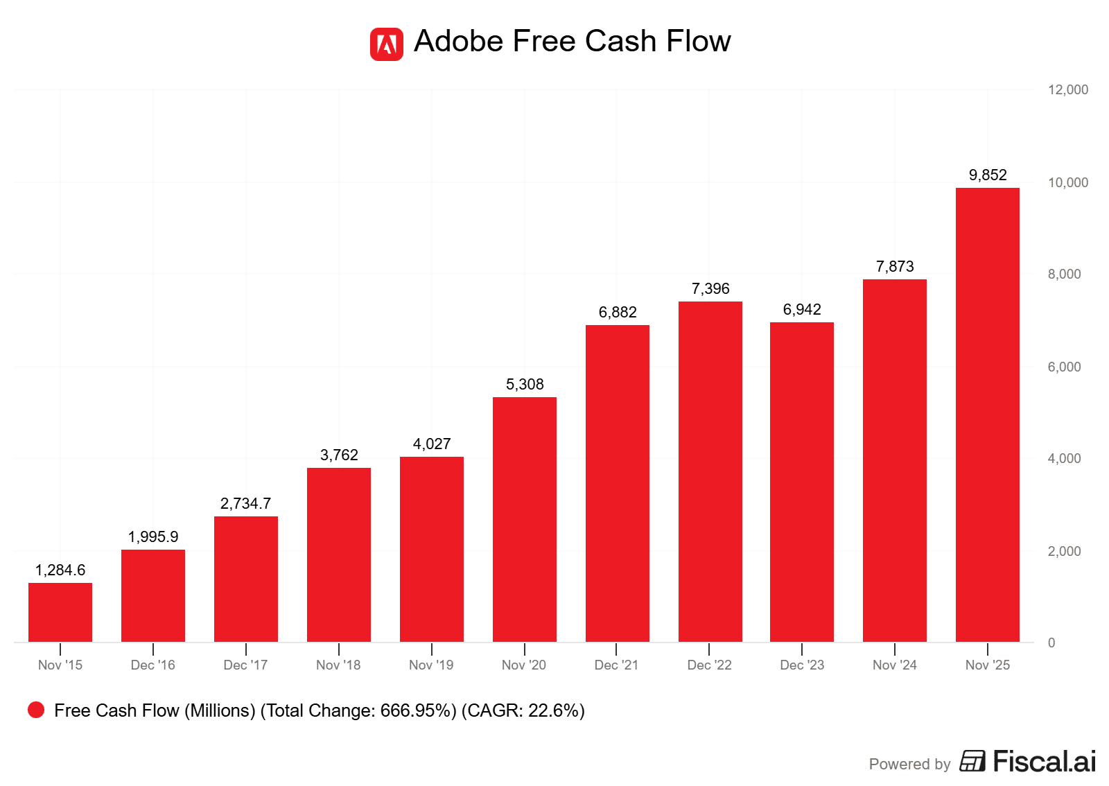 This SaaS selloff isn’t just about a bad quarter. In fact, a lot of these companies are reporting fairly strong results. Look to a company like Adobe below. Free cash flow has never been higher.
