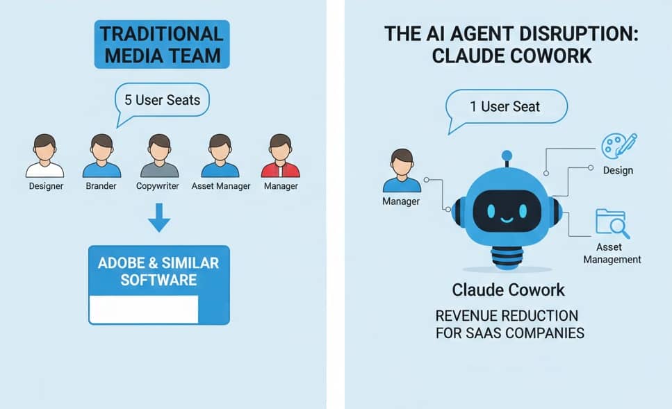 As I mentioned, most major software players like Salesforce or Adobe are built on models that scale with headcount. Their revenue is directly tied to how many humans are clicking buttons. If an AI agent like Claude Cowork replaces 10 employees, those software companies lose 10 subscriptions.