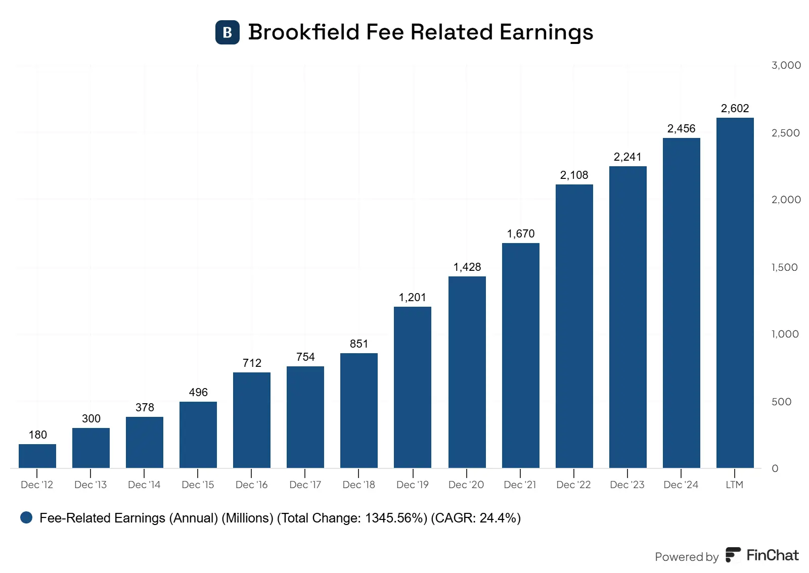 I’ve attached a chart of the company’s fee-related earnings to give you an idea of how well Brookfield is performing despite a slumping share price in 2025.