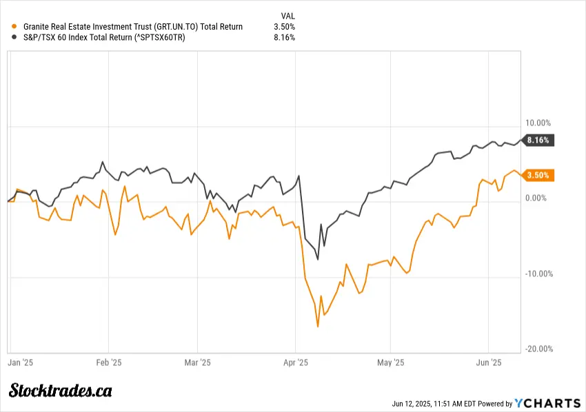 Granite is a puzzling one. The REIT is doing just about everything right – growing funds from operations, improving payout ratios, and raising the dividend. However, the market has shifted to being increasingly bearish on industrial REITs. Although I don’t expect them to do well in this environment, I’m certainly surprised at how bad Granite has done, sitting on effectively flat returns over a 3-year timeframe.