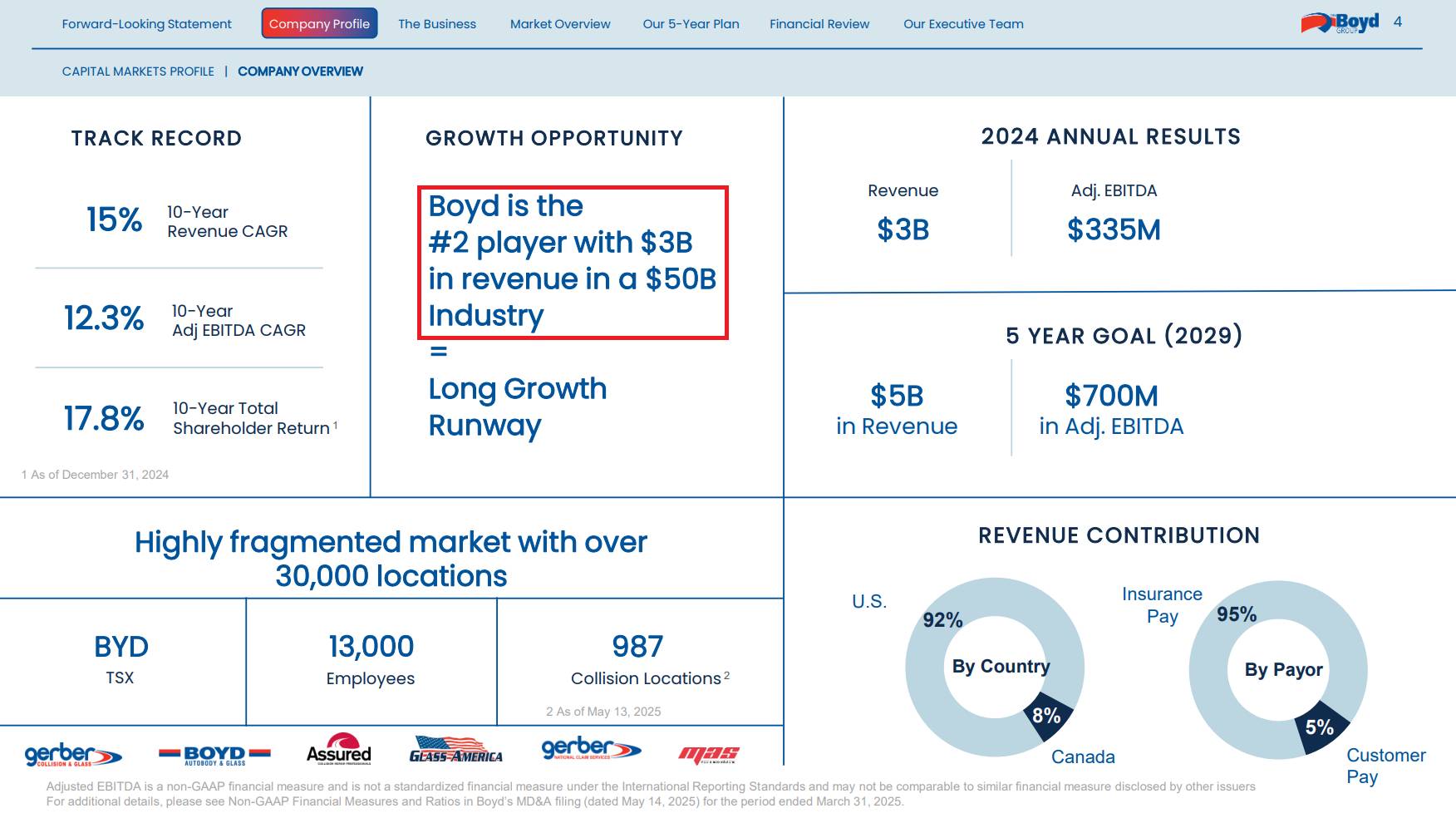 “Boyd continued to deliver market share gains during the first quarter of 2025 posting same-store sales declines of only 2.8% in a market where declines in repairable claims were estimated by industry sources to be down in the range of 9% to 10%.”