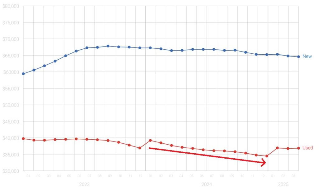 I’ve attached a chart below showing the trend of used and new auto prices over the last 2.5 years to give you an idea.