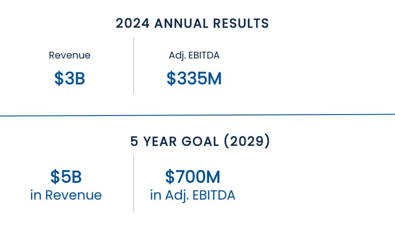 The company expects $5B USD in revenue and $700M in EBITDA by 2029. In 2024, the company generated $3B USD in revenue and EBITDA of $335M USD.
