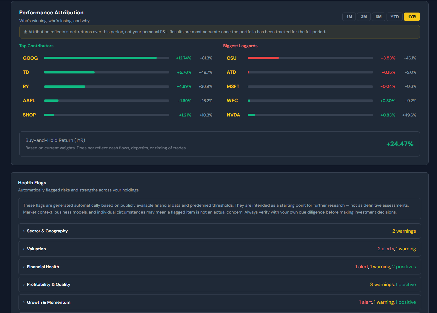 This video will walk you through how to set up your portfolio on the platform and how you’ll have a comprehensive analysis within 15-30 minutes. Because this is a manual-entry portfolio (I don’t believe in linking my portfolio details anywhere online), it does take a bit longer, yes. However, the juice is most certainly worth the squeeze here.