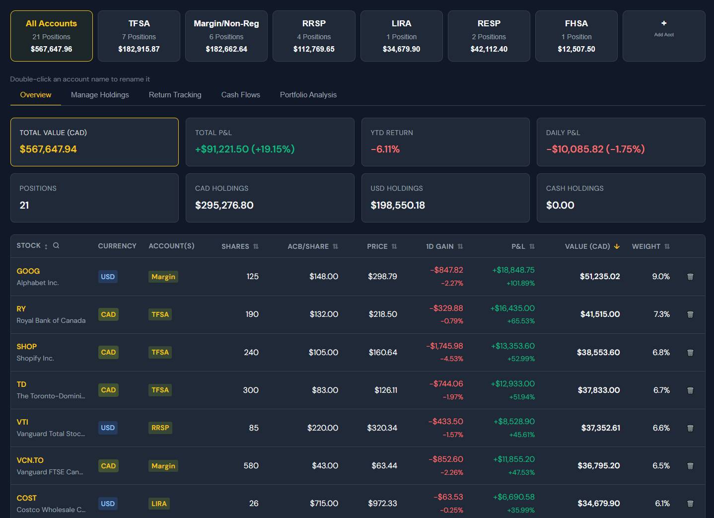 I believe I have developed the most comprehensive portfolio tracker in the country, and it is now available to you as simply a single feature in an entire platform.