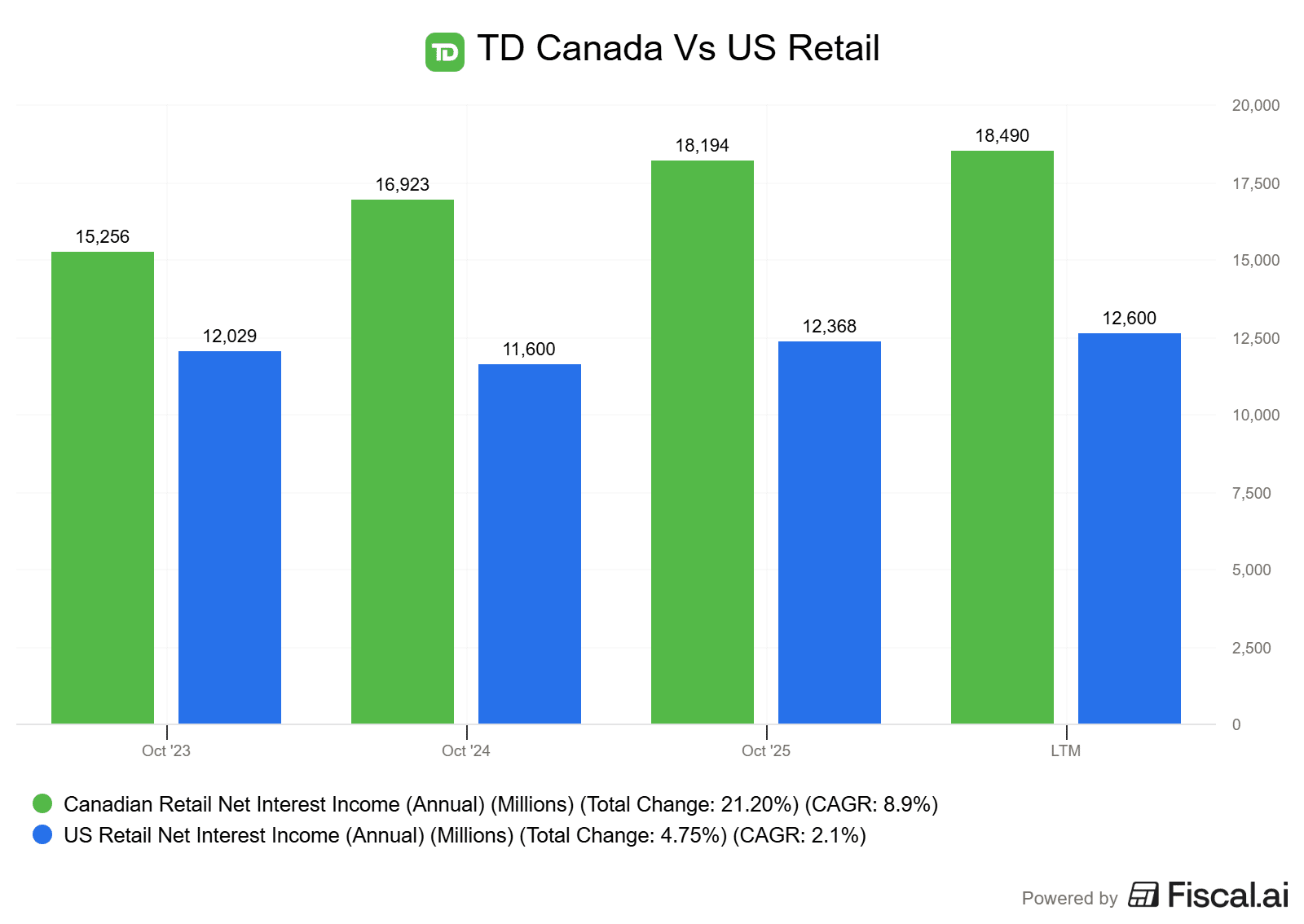 The 20% increase in adjusted earnings per share is a big rebound, driven by stabilization of the U.S. segment and record-breaking performance in Canadian retail. The Canadian banks are killing it in Canada, there is no doubt.