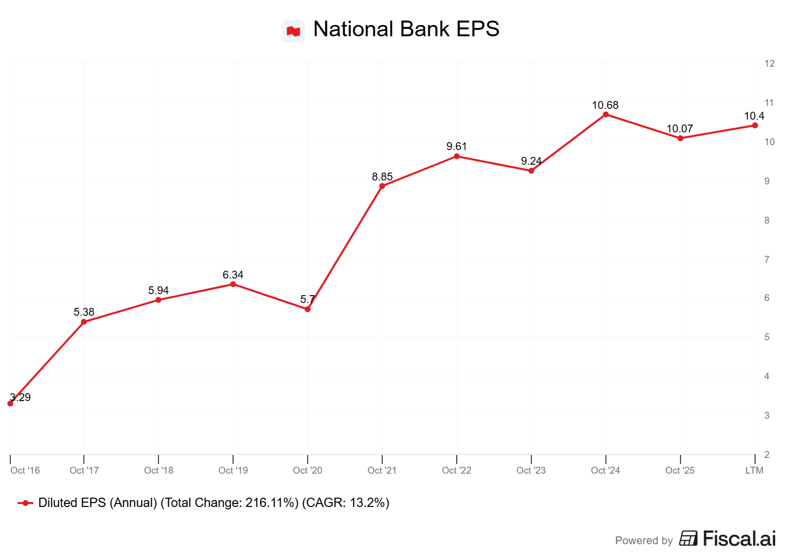 RBC posted record earnings, up 14% to $4.08. This beat estimates of $3.85 by nearly 6%.