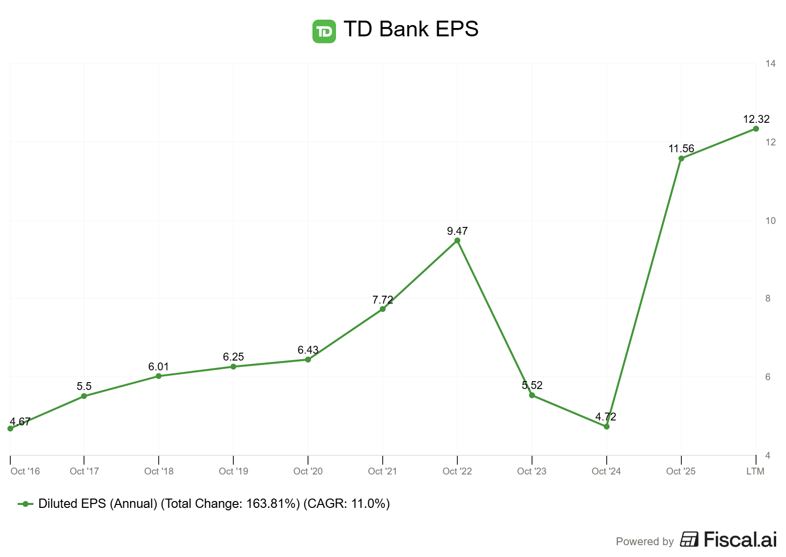 You can see the crater the AML issues left in TD’s earnings in the chart below. We’re now back on track.