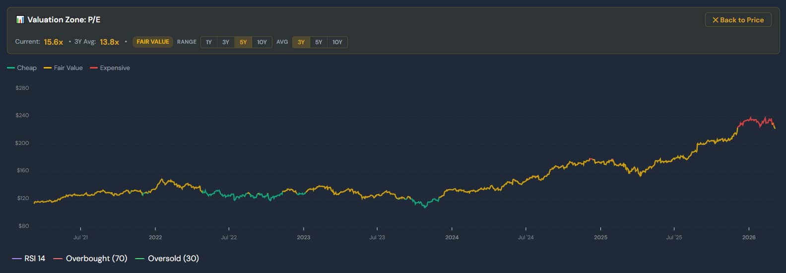 Just to give you an idea (and a sneak peek at the new platform releasing in a few days), here is a “Valuation Zone” chart of Royal Bank. Green is undervalued, yellow is fair value, and red is overvalued.