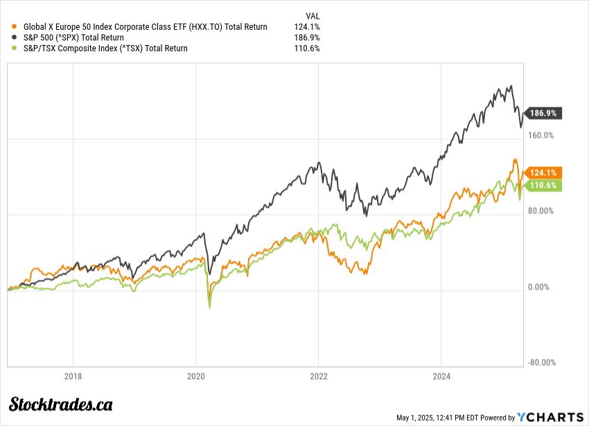I am a fan of the Global X Europe 50 Index Corporate Class ETF (TSE:HXX). This fund is much the same as the S&P 500 Corporate Class ETF (TSE:HXS) in the fact that instead of paying a dividend, the fund lumps everything together as a simple return on its share price. From a taxation perspective, this is attractive to many investors.