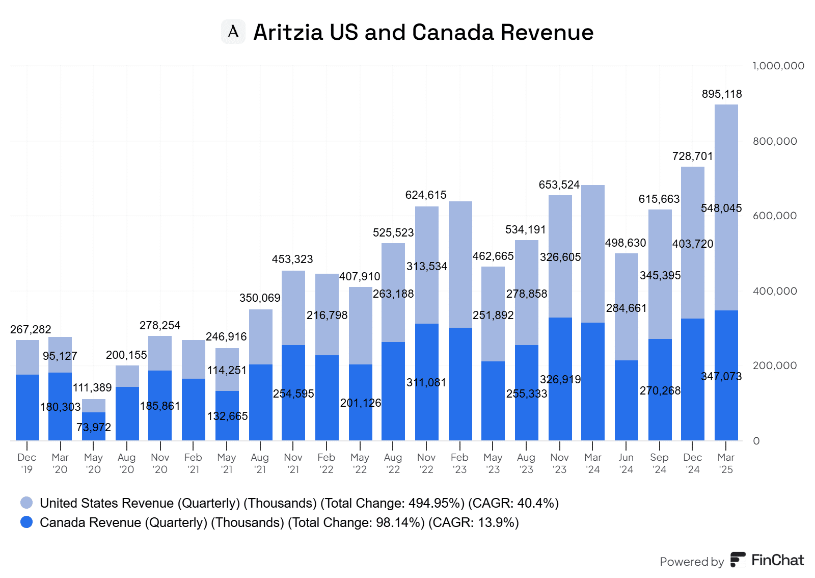 I’ve attached a chart below highlighting their US and Canadian revenue. Notice how fast the US revenue is growing.