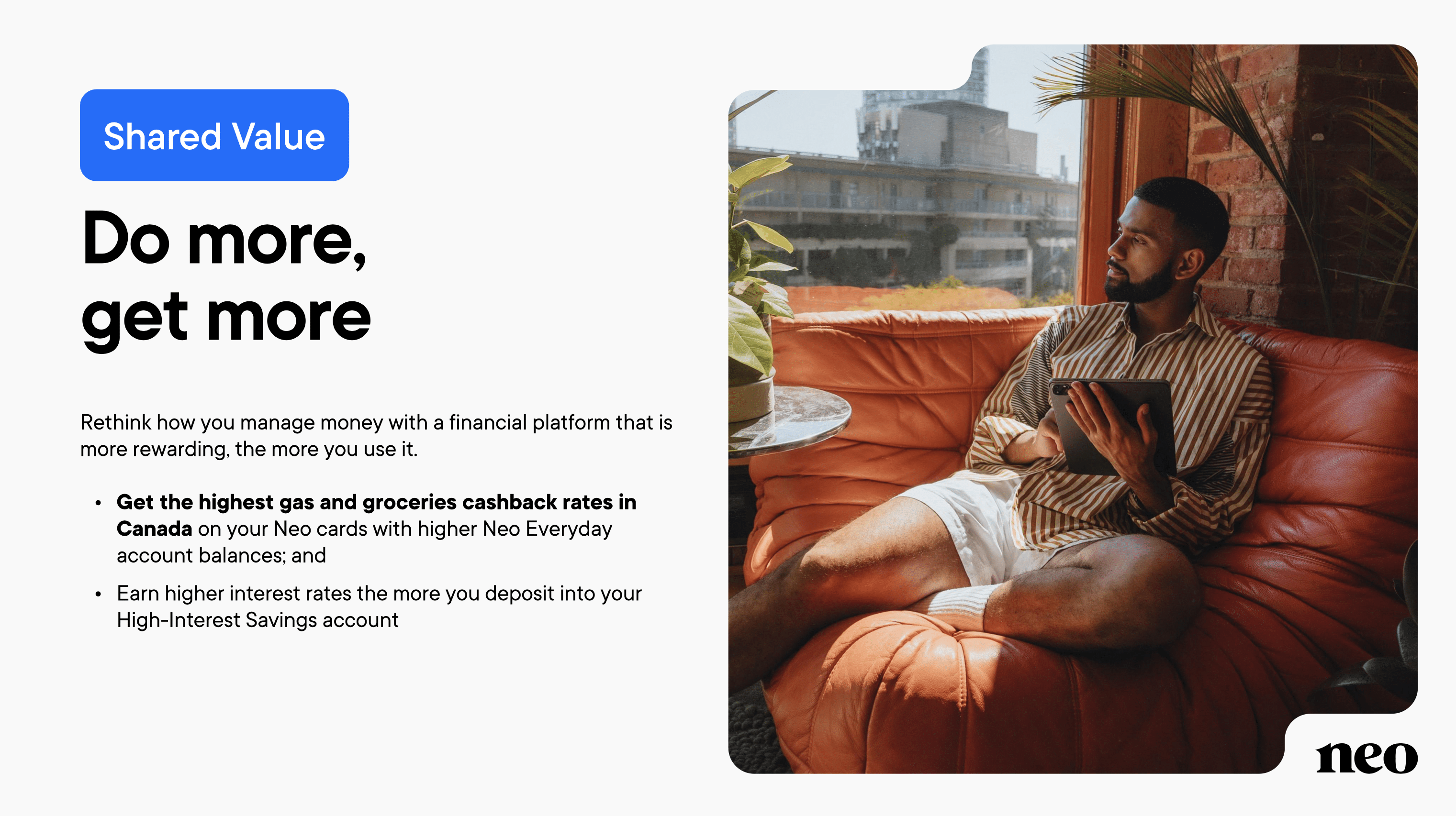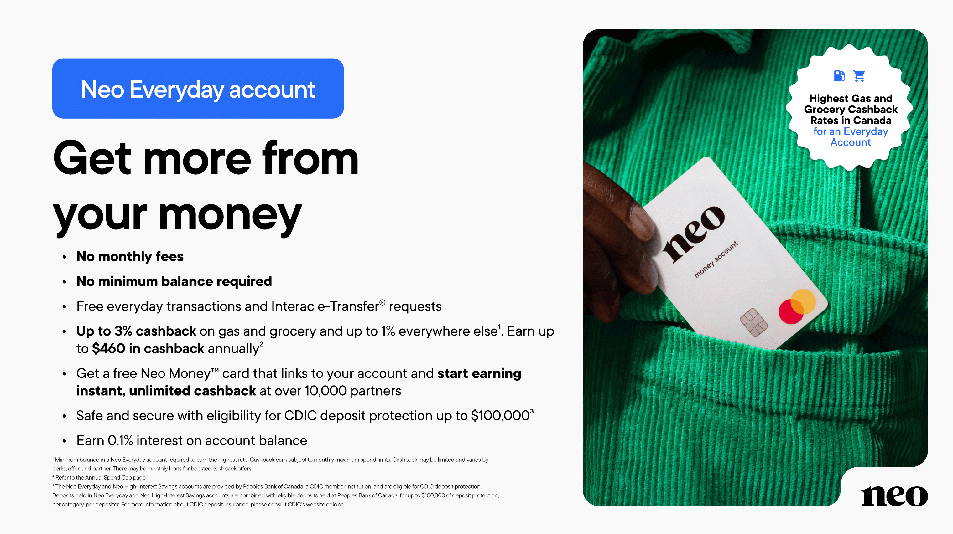 That way, Canadians have, at minimum, ample choices concerning our finance tools. Neo has many products, for those who like to bundle services with one bank. Let’s get started right now.