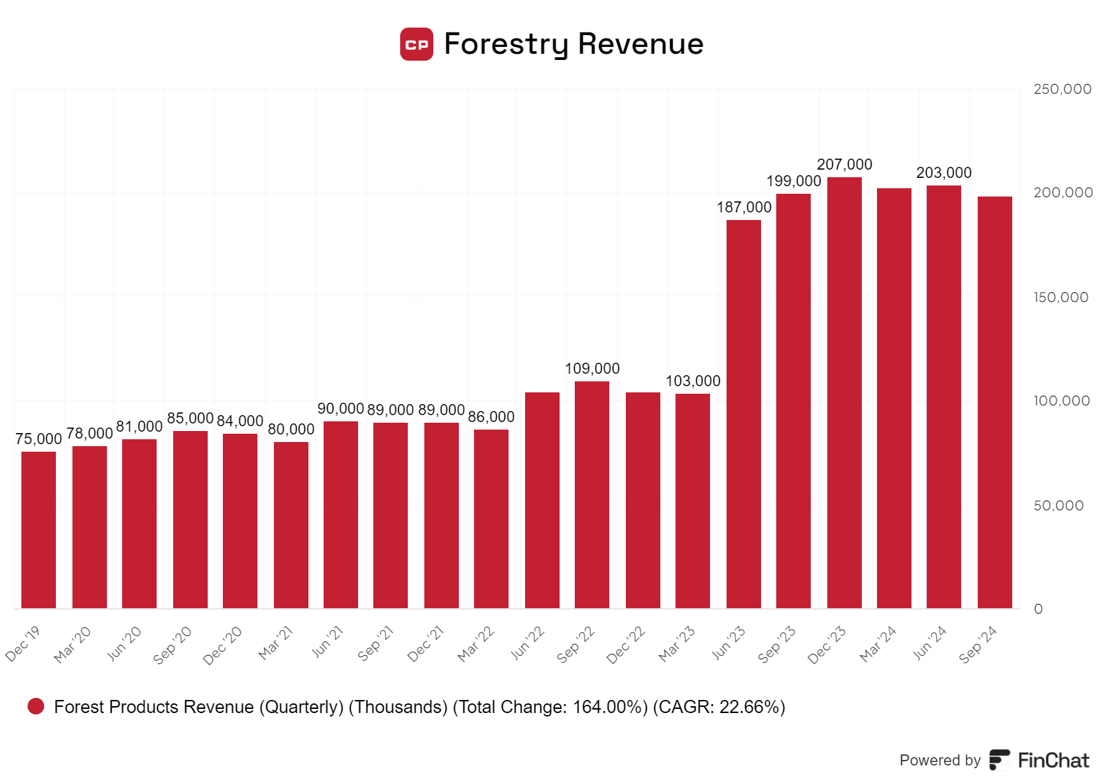 Lumber demand remains relatively soft, which is to be expected during times of economic weakness, as housing starts generally go down. However, the demand for automotive and petroleum shipping remains well ahead of that of its major competitor, CN Rail.