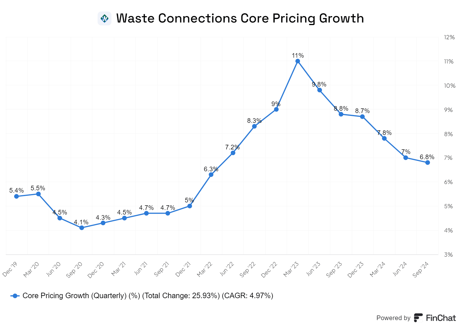 Overall solid waste growth increased by 5.4% on the quarter and 4.7% on the year. Considering solid waste collection and disposal makes up 93%~ of the business, this is a key metric you need to be keeping an eye on if you’re a Waste Connections owner.
