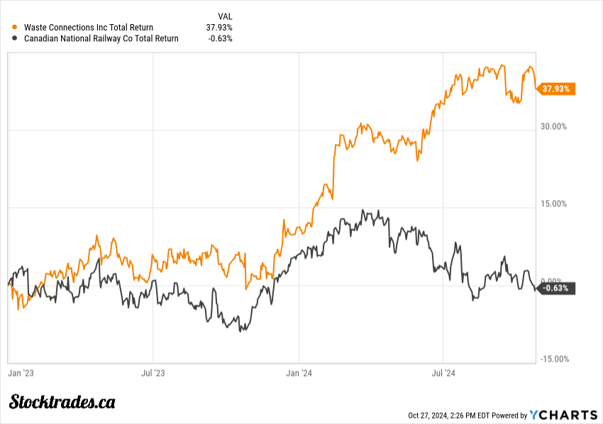 Thus far, that’s looking to be true, as the company has returned around 38%~ more than CN Rail since we made the swap.