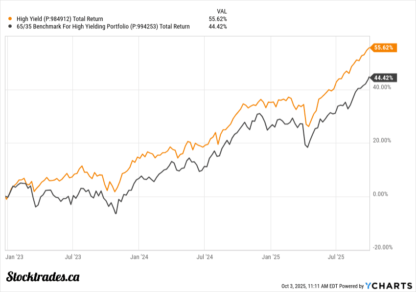 The benchmark for this portfolio is a 65/35 TSX/S&P 500 benchmark, primarily because the portfolio contains around 65% Canadian equities and 35% US equities.
