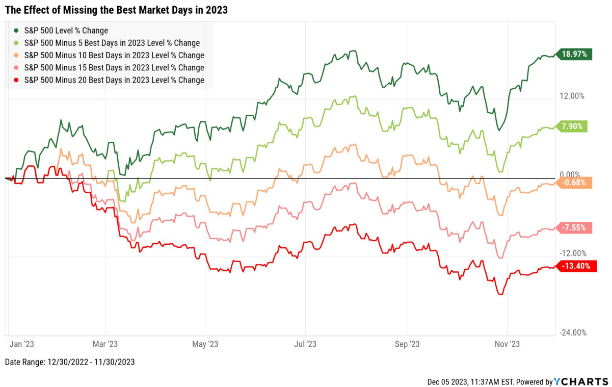This is why we talk about being fully invested. Given the volatility, many folks sat on cash this year, hoping to time their re-entry into the market. We’ve received several emails from past members indicating they went to cash and would return once the bull market comes back.
