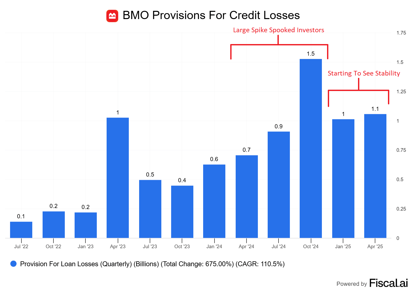 I will admit, the rapid acceleration in provisions from the company during that time period did scare me (see chart below), to the point I ended up selling it and buying into National.