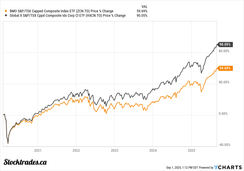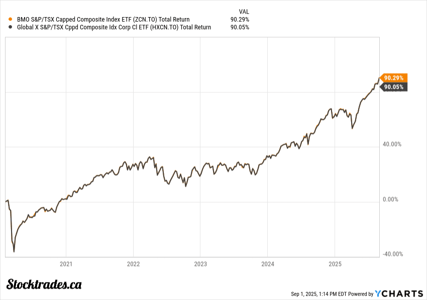 If we look to the chart since 2020, it looks like an absolute no-brainer that HXCN is the better choice. However, this is simply the unit price of the ETF. It does not include dividends paid. Considering HXCN’s “dividends” are just represented in an increase in unit value, it can be expected to grow in price much more than ZCN. However, factor in the dividends, and the returns are nearly identical.