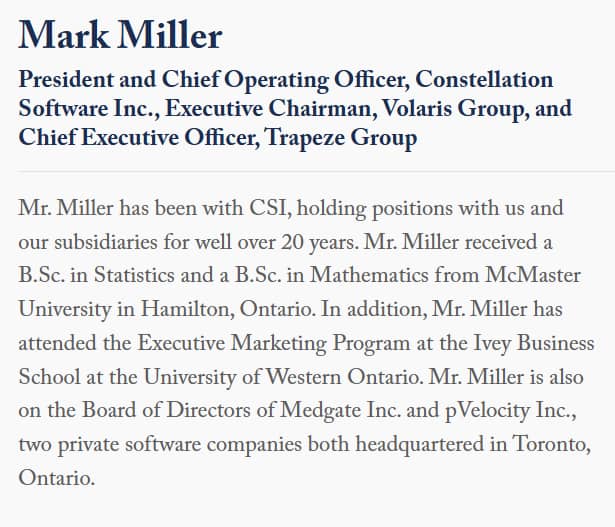 Mark Leonard stepping down as President marks the first real test of succession at Constellation Software. Considering the company was founded in 1995, he has been with Constellation through thick and thin.