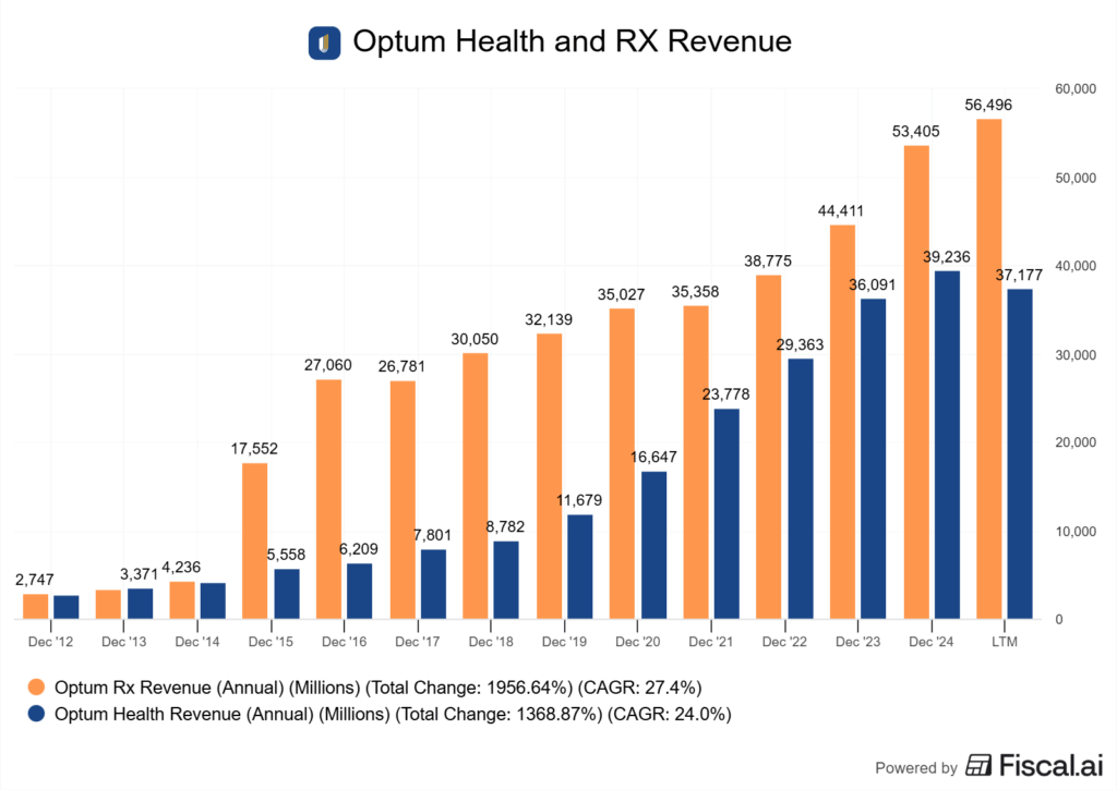 Optum’s steadiness often softens volatility in the insurance arm. Revenue growth at Optum Health and Optum Rx is still positive, just not as strong as last year.