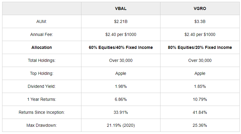 VBAL vs VGRO – Comparing the Vanguard Balanced ETFs