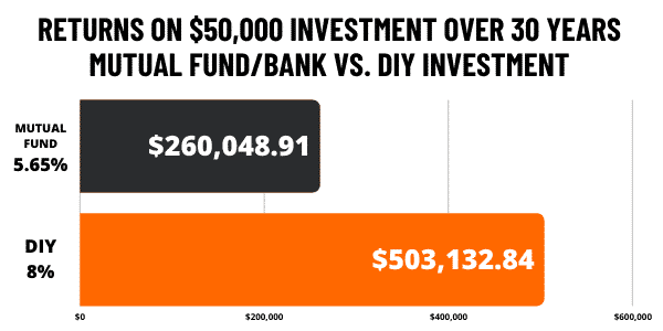 However, it is important to understand the fees you will pay for such a service. As highlighted by the chart below, a 2-3% management fee charged by a mutual fund or financial advisor can have significant impacts on your portfolio over the long term, often a 6 figure sum.